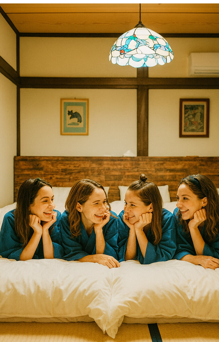 大寝室はベッド4台、小寝室は追加の布団2組、ご希望によりお部屋を分けることができます。