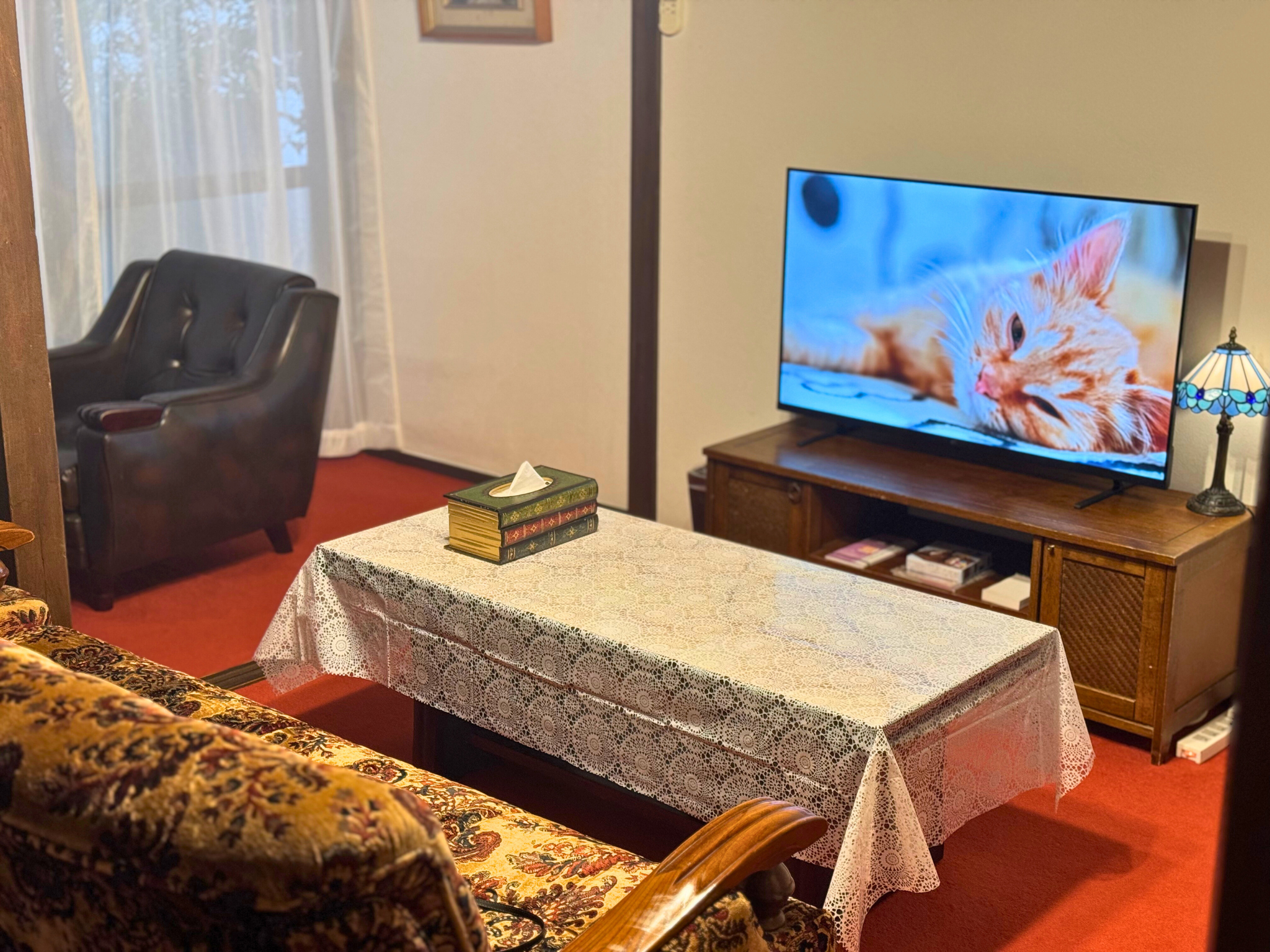 ソファー、テーブル、一人用ソファー×2、衣類掛けハンガー、エアコン、 40インチTV(Netflix、Amazon Prime、YouTube、TVer ※地デジ不可) |